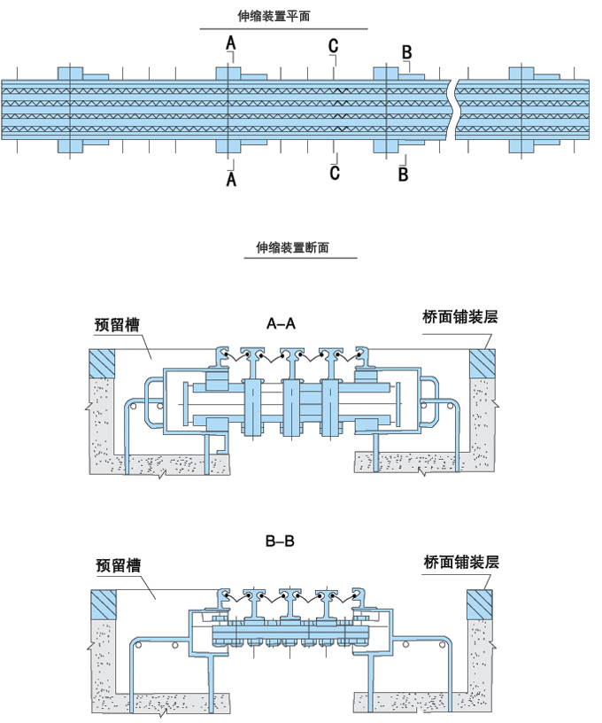二、伸縮量0-80mm伸縮裝置典型結構布置圖
