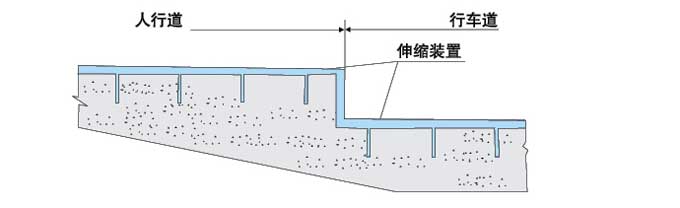 為適應人行道與行車道的過度,本公司在制作伸縮裝置時,可根據用戶提供的圖紙制作與路面相適應的伸縮 裝置。如下圖所示: