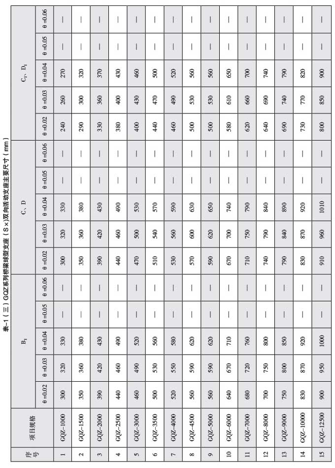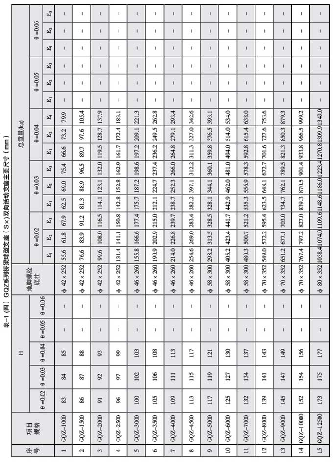 球型支座》GB/ T17955-2009配套產(chǎn)品,本參數(shù)表供生產(chǎn)廠家發(fā)布GQZ系列產(chǎn)品信息使用,以 方便橋梁設(shè)計人員選型。