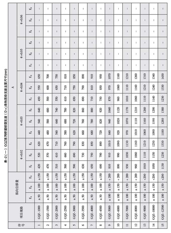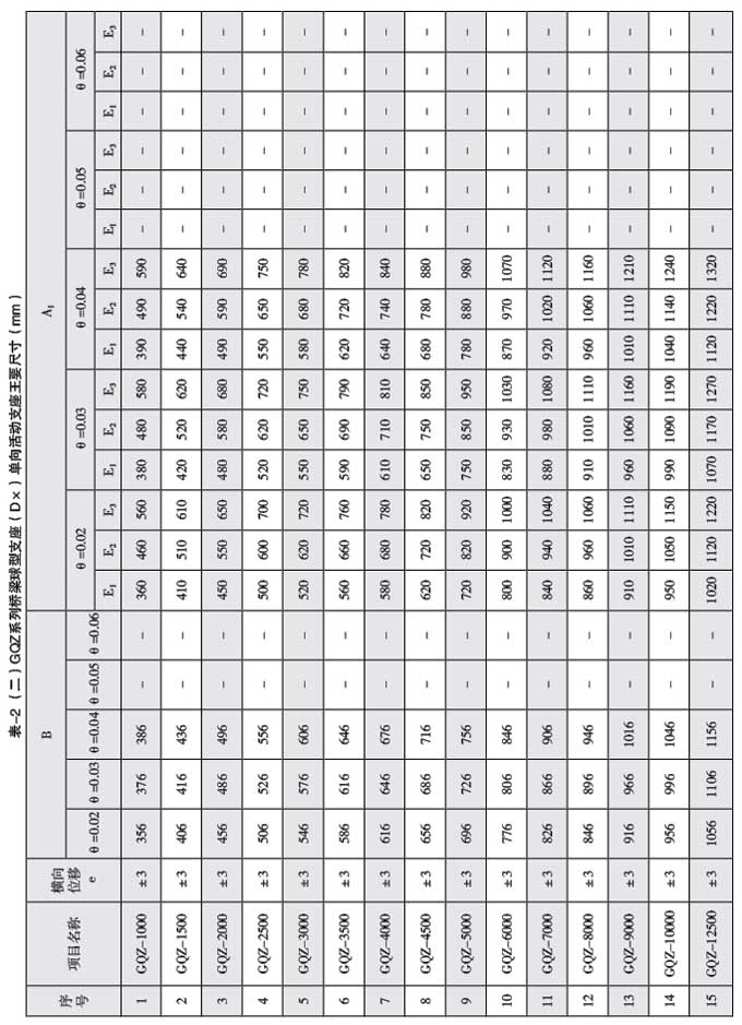 4、支座可承受的水平力:單向活動支座(DX)及固定支座(GD)在非滑移方向的水平力均不小于支座設(shè) 計承載力的10%。
